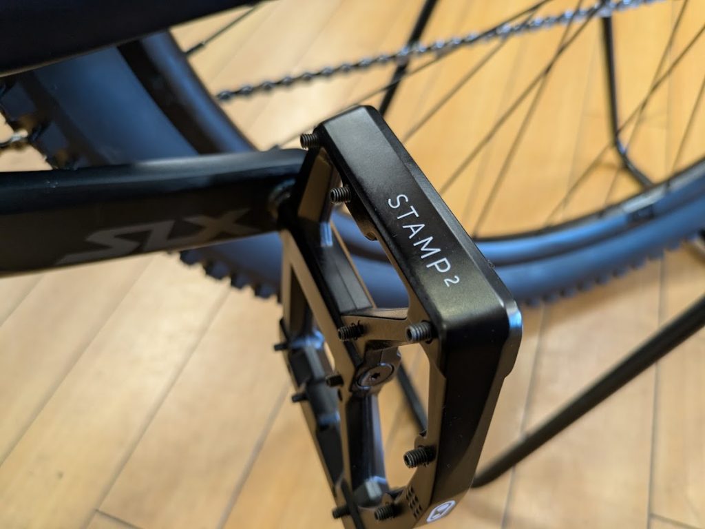 MTBでフラぺと言えば信用と安心の剛性感をもつクランクブラザーズです。スタンプ1も軽量で非常にいいのですが、今回はスタンプ2です。だいぶ前にモデルチェンジしてましたがその間乗っていなかったのでようやく試せる機会になりました。