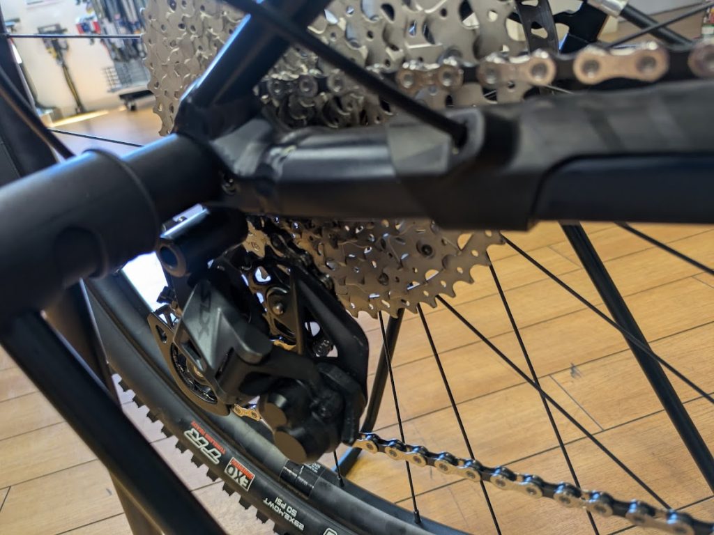 こちらはスタッフバイクですが、マウンテンバイクに興味がある方や、フルサスの試乗をしてみたい方なんかはお声がけしていただければ、分解状態ないしドロドロ状態でなければお乗りいただけるようになってますので、お気軽にお声がけください。
