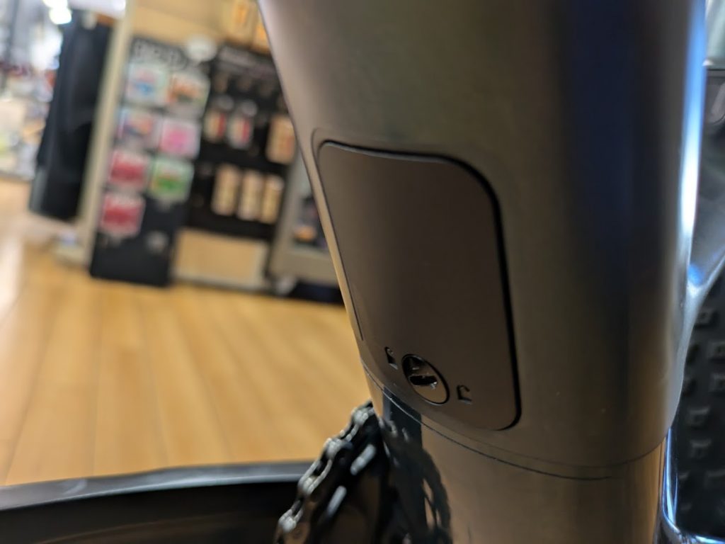 ダウンチューブを開けるとケーブルの配線へとアクセスできます。現在はリアブレーキと変速回りがささっており、将来的なドロッパーへのアクセス配線もあるので、追加装備は可能です。