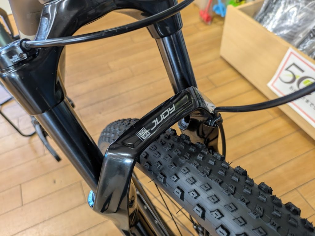 サスペンションはロックショックス JUDYが装備してあります。重めのサスペンションですが、初めの一台ではここからトレイル遊びをできる仕様になっています。