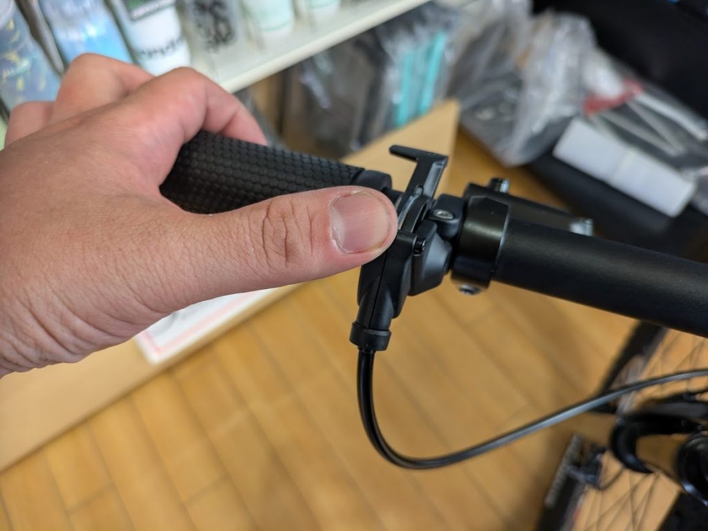 サスペンションはロックアウト機能が手元で操作できるので、切り替えにいちいちサスペンションを触らなくても大丈夫です。