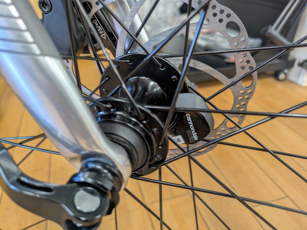 フォークはフルカーボンになっており、振動吸収もそうですが重量の軽減にもなっています。フロントはスルーアクスルになっており、クイックリリースより高い剛性を持っていますのでかなり走りに直結してくると思います。