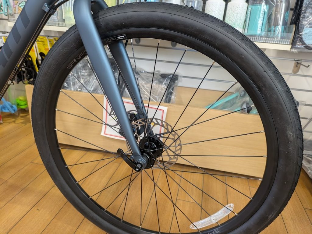 この価格でもテクトロですが、油圧ディスクブレーキを搭載しています。急な雨の日の通勤などでも活躍します。
