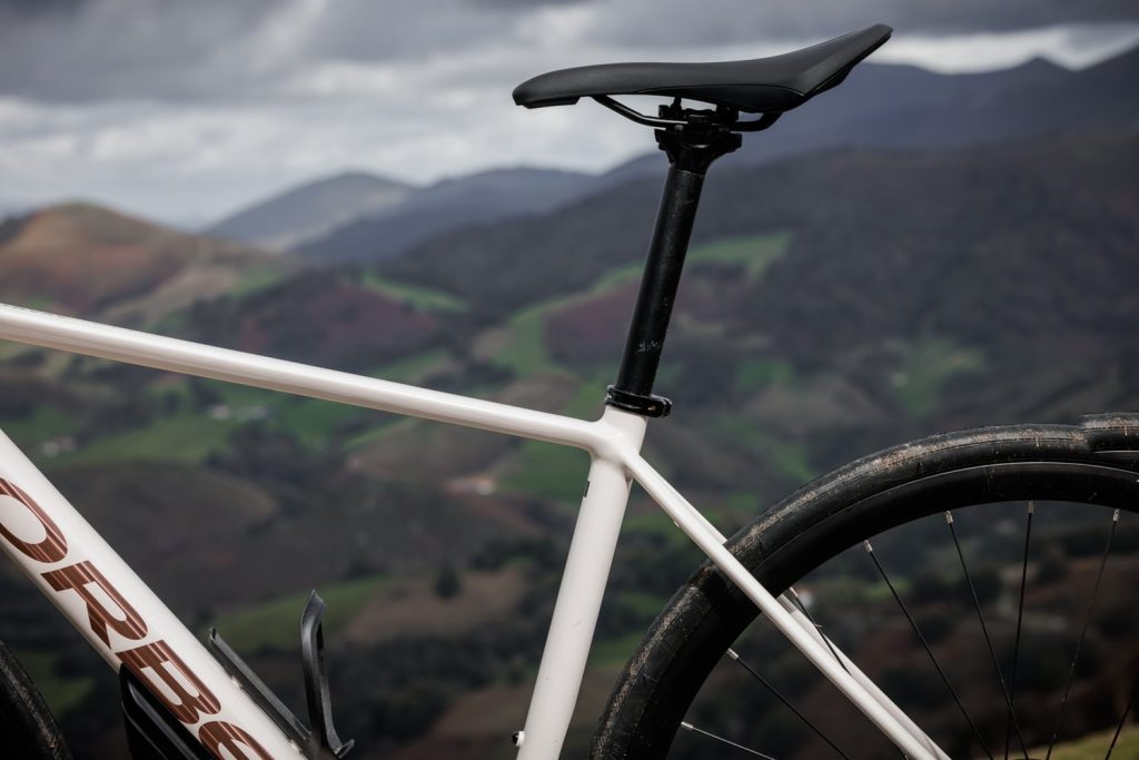 実際に、このフレーム形状は振動吸収を軽減させるように設計されており、オルベアもずっと乗っていたいと思わせるような設計をしたと効いています。