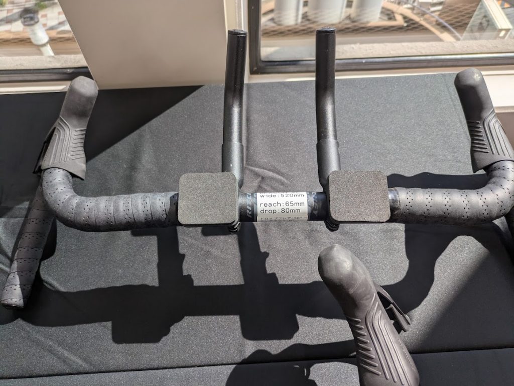 最近話題にもあがっていましたが、はじめて装着時の状態を手に取りましたが、かなり薄いですね。厚めのバーテープを使っているかたには合わないと思いますが、薄いバーテープで、しっかりと握って、よりダイレクトに使いたいなら、マカレスはすごくいいと思いました。