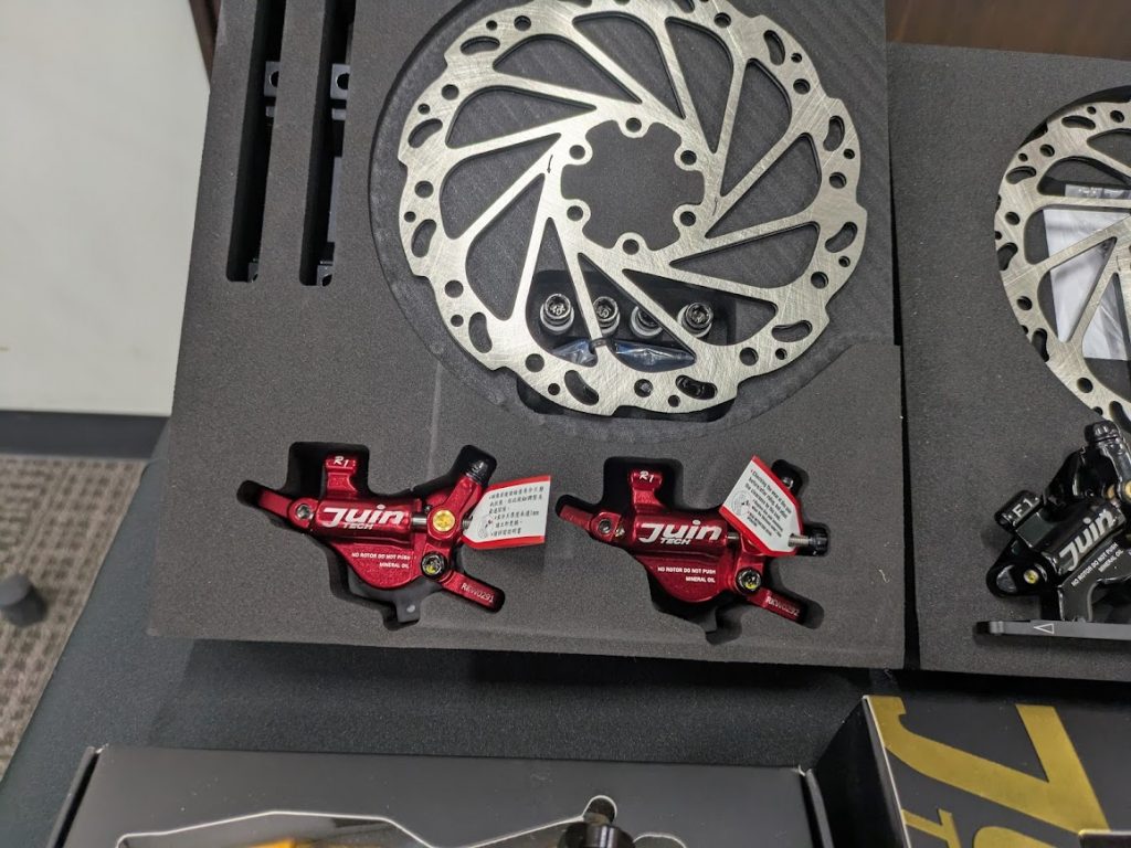 フラットマウント、ポストマウントがありますが、油圧ディスクみたいにがっつんと効くというよりも、握りに遊びがあるのでワイヤー引きのディスクブレーキの上位モデルのような位置づけでいいかなと思います。