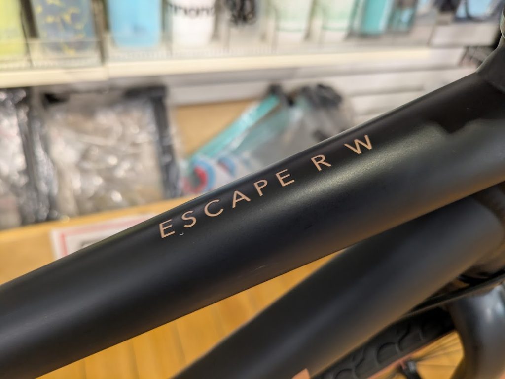 GIANTの女性向けモデルESCAPEになります。ご予算があれば絶対にDISCブレーキの方がよろしいとは思いますが、雨の日に乗らない方や、ちょこっと通勤で使われるんであればこちらでもいいかと思います。