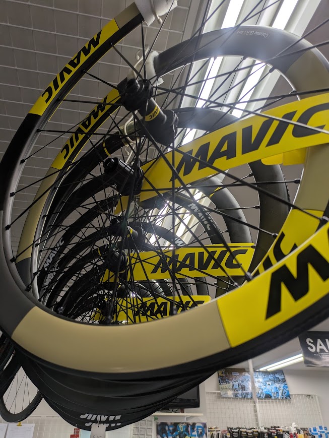 ホイールはシマノ、MAVIC、フルクラム多くの正規メーカーを取り揃えております。オトクに買えるモデルもあるので、ぜひぜひロードカスタムもサイクルセンターサンワにどうぞ。