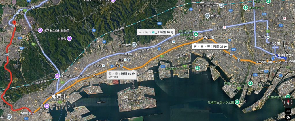 今回の移動自体は出屋敷から三宮