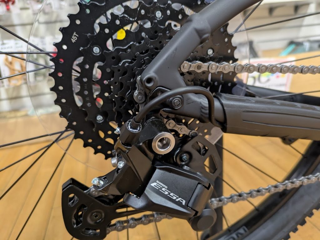 コンポはシマノのESSAが付いており、エントリーグレードながらもキビキビした動きで変速してくれます。そして、フロントシングルです。