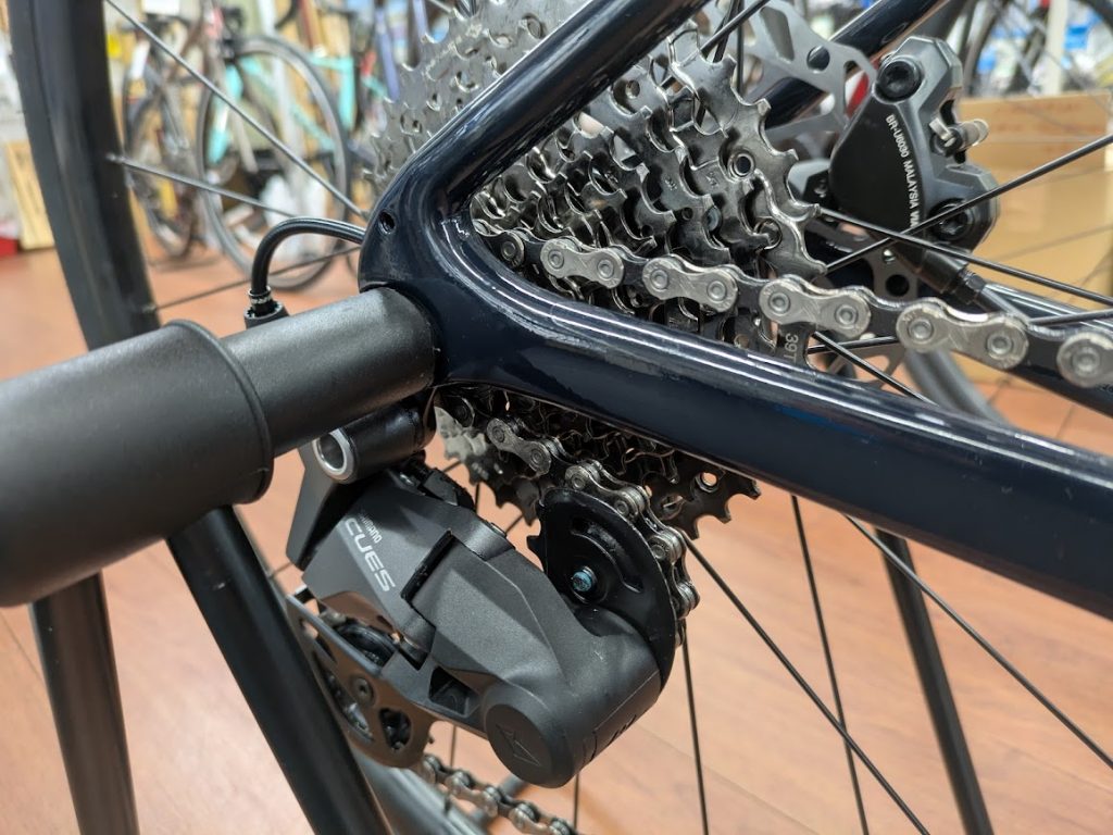 今回、キューズが付いたことにより、スプロケットも39tとかなりワイドなギアついたので、かなりカルギア比で坂道なんかも結構乗り切れると思います。