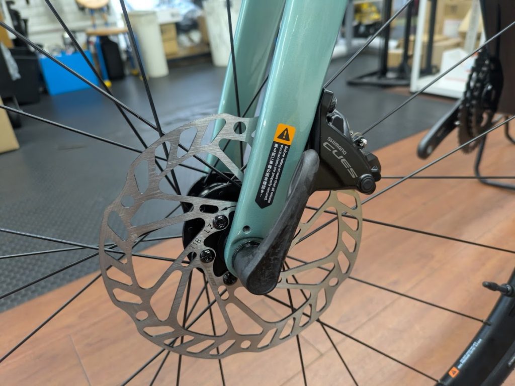 ブレーキは160mmになります。これはキューズドロップの仕様上、ローターは160のみにはなりますが、油圧ディスクブレーキなので始めての方や、手があまり大きくない方でも軽い力で強い制動力が出ます。
