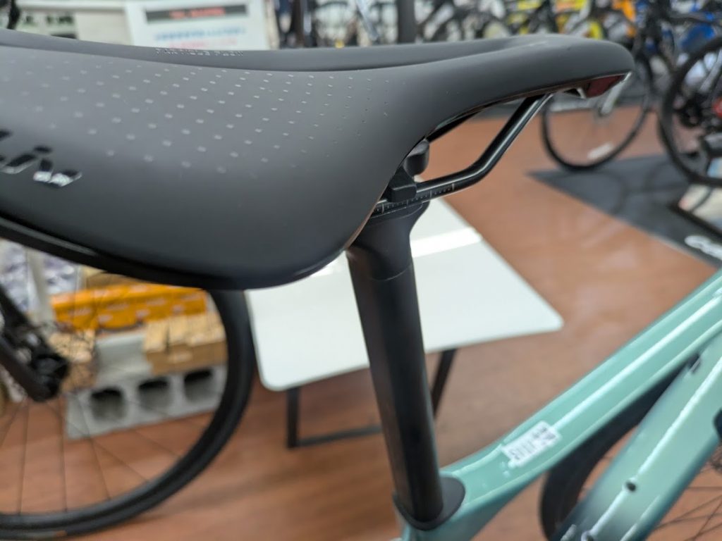 長く快適に走ることを想定しているため、シートポストにはD形のカーボンのDフューズが採用されています。