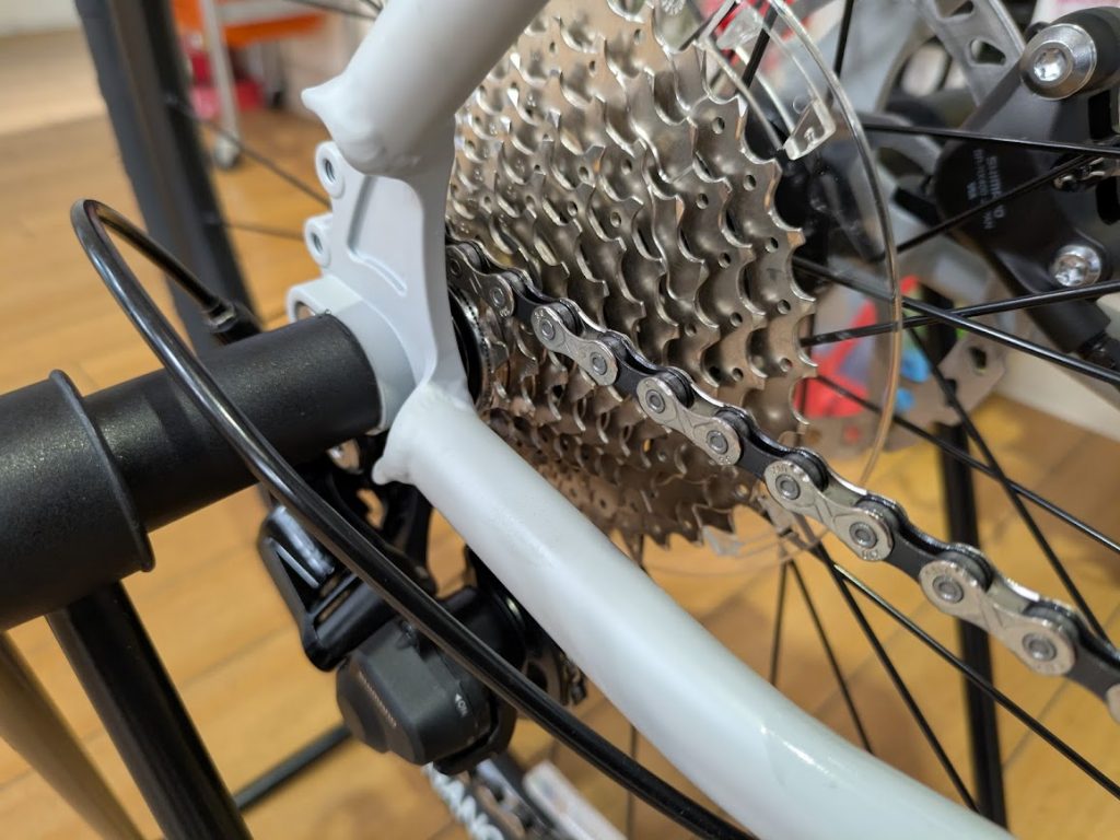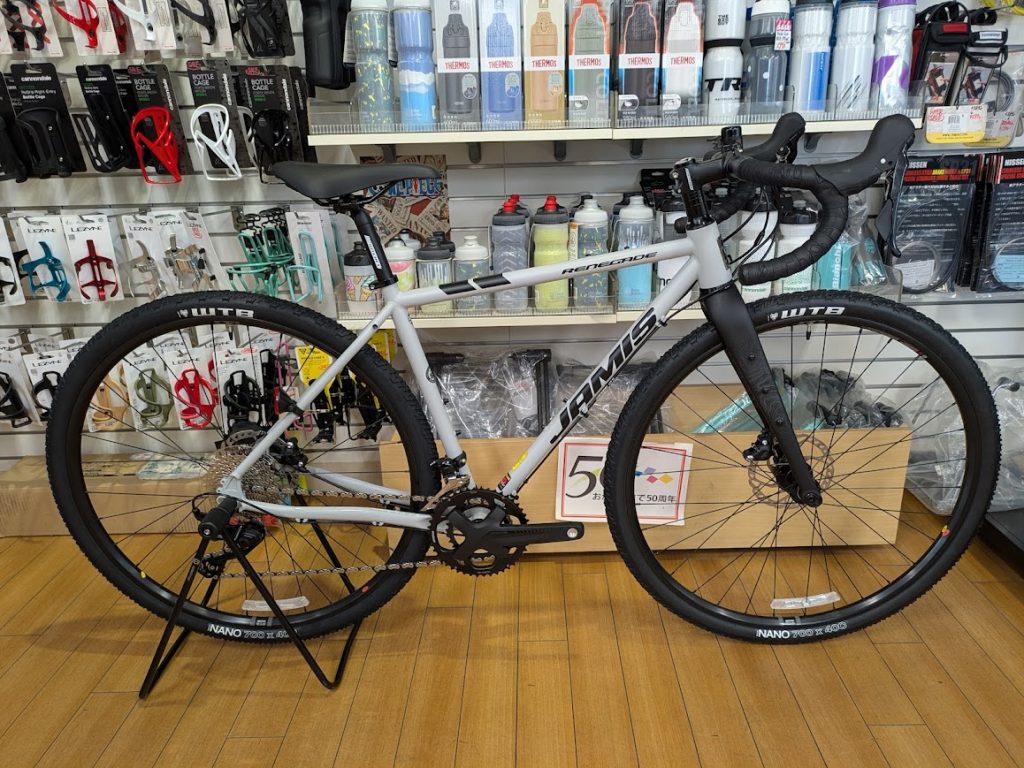 クリアランスは45Cまで入りますので、遊びの幅も広がると思うので、ロードバイクかグラベルか悩んでいる方なんかは一度、ご来店いただき、グラベルロードの始祖たるJAIMSを見ていただければと思います。