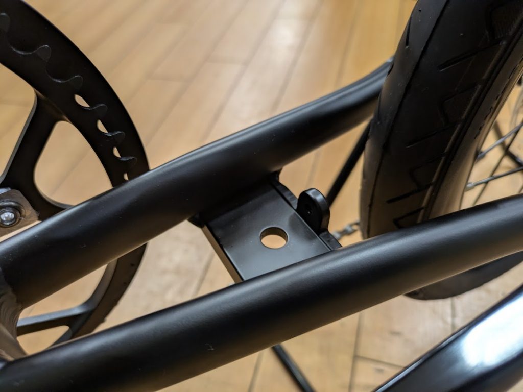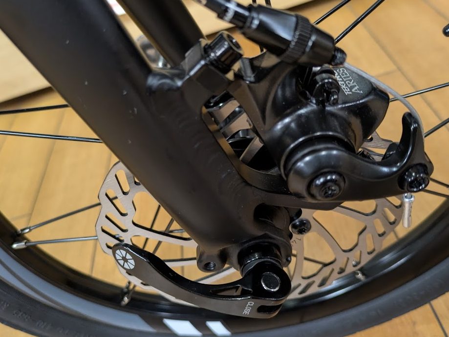 ブレーキは制動力の高いディスクブレーキを採用しています。ワイヤー引きですが、そこまで効きすぎるということもない、ある意味絶妙のバランスかなと思います。