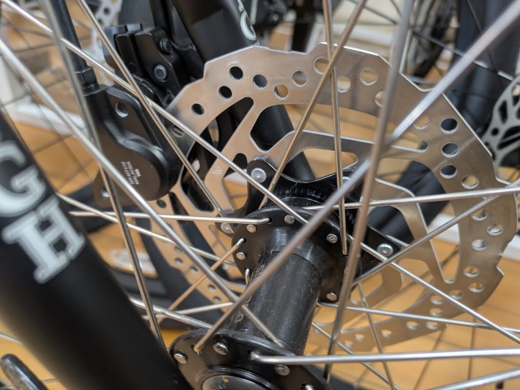 モチロン、前後とも油圧ディスクブレーキを搭載しており、天候や路面状況で左右されずにしっかりとしたブレーキングが可能です。