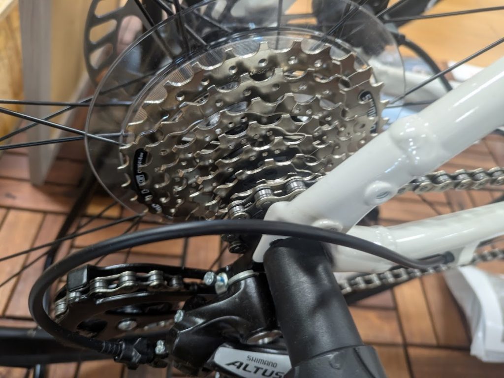 変速は3×8の24段となっており、多彩なギア比でどこへでも行ける仕様となっています。
