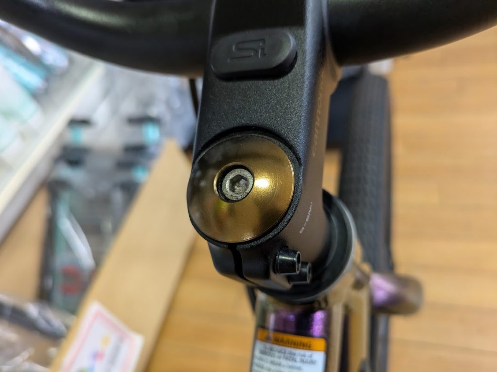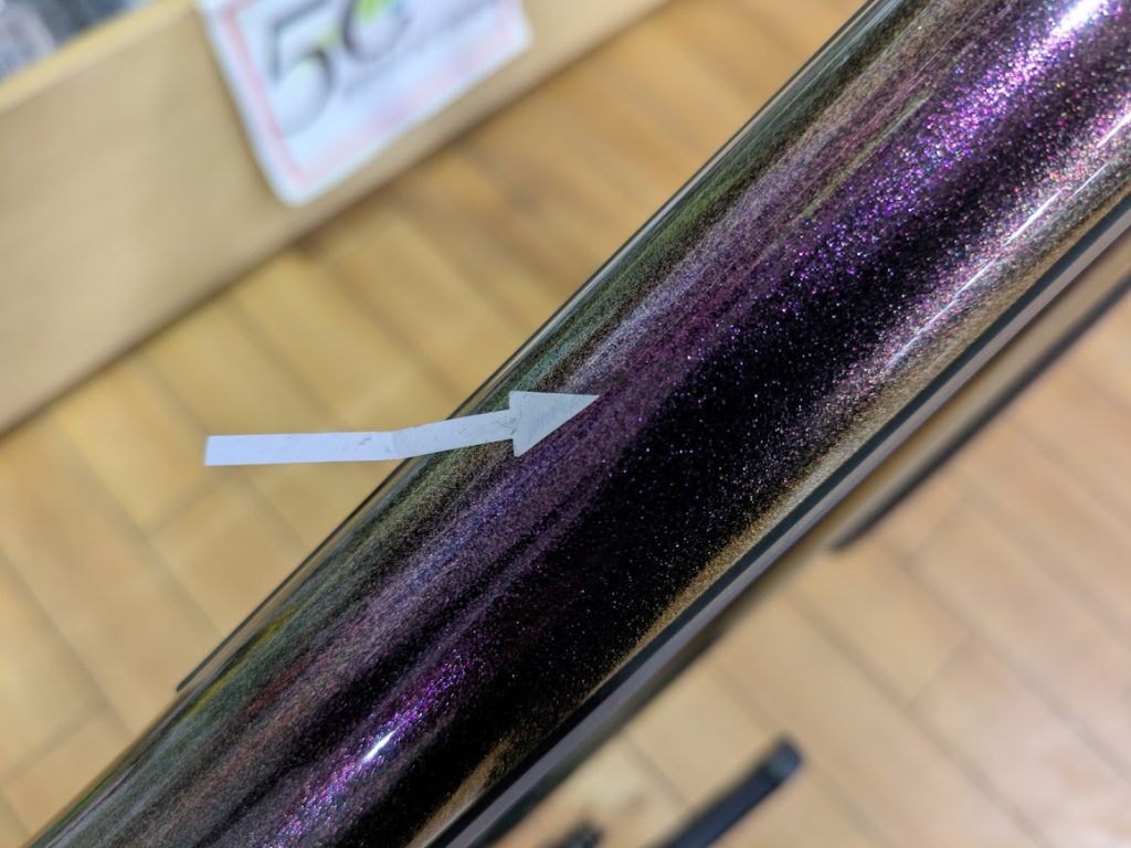そしてヘッドキャップですね。実はこのカラーだから、この色なのかーーという事はなく、本来はブラックだったのですがアルマイトが変色したがために、色が変わってしまっています。