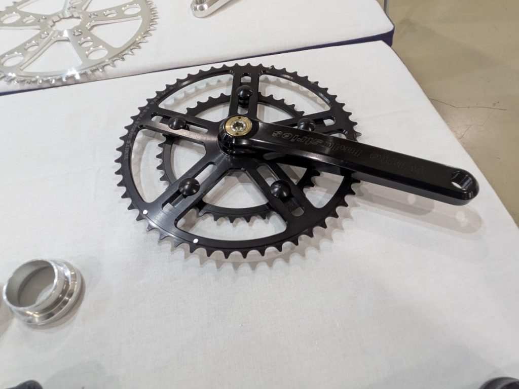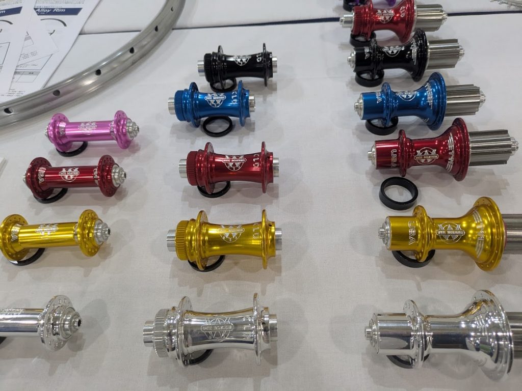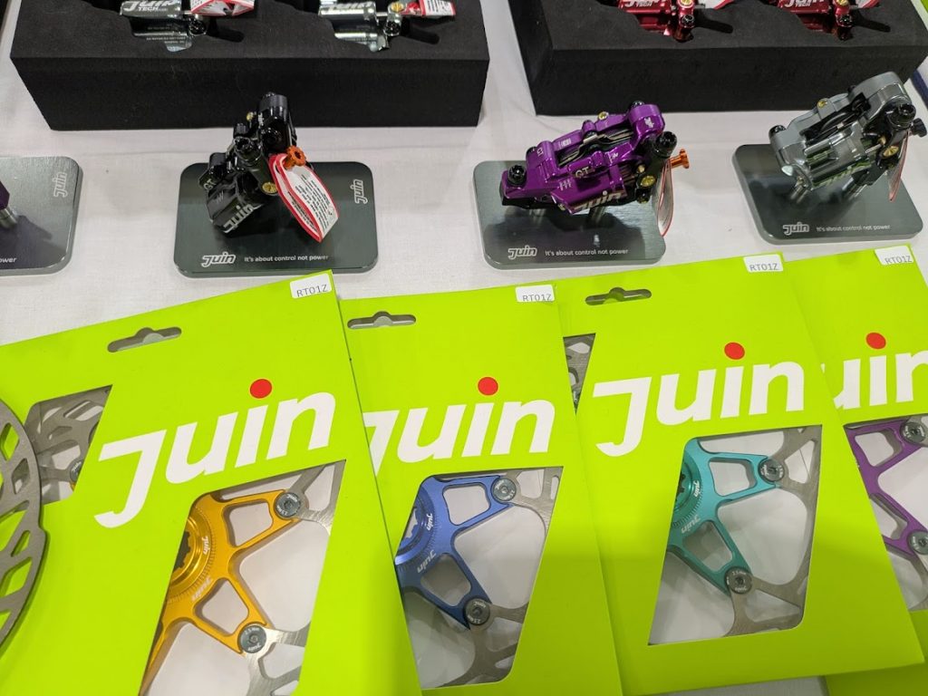 前回にも並んでおりましたが、こんかいはより多くの製品が展示してあります。これは本格始動前なのではないでしょうか? 代表的なのがこのブレーキなのですが、最近では珍しくワイヤー引きでありながら、キャリパーは油圧という中々面白いです。
