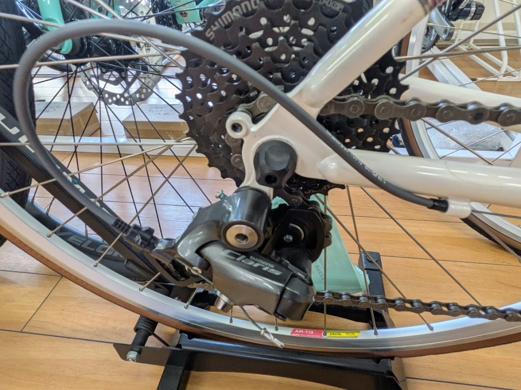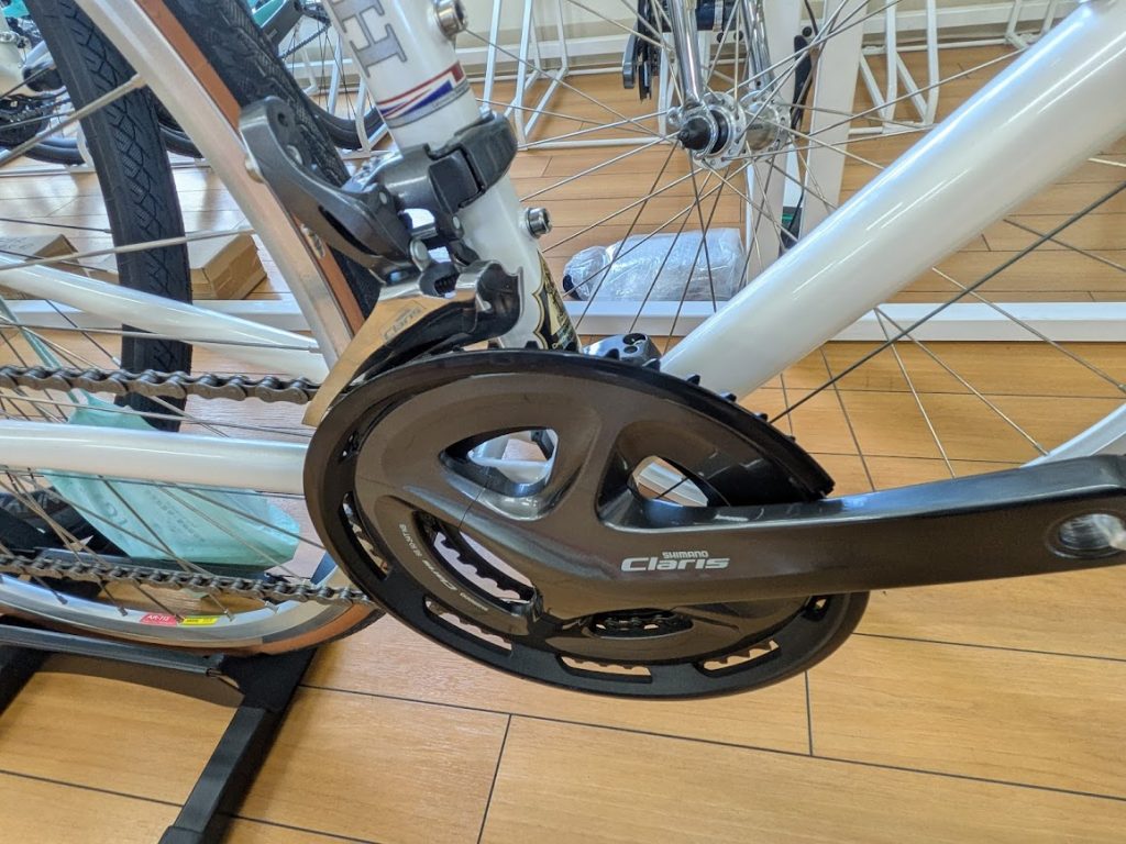 コンポーネントはシマノ クラリスが搭載されており、2×8の変速。ロード的な素早い変速となっています。