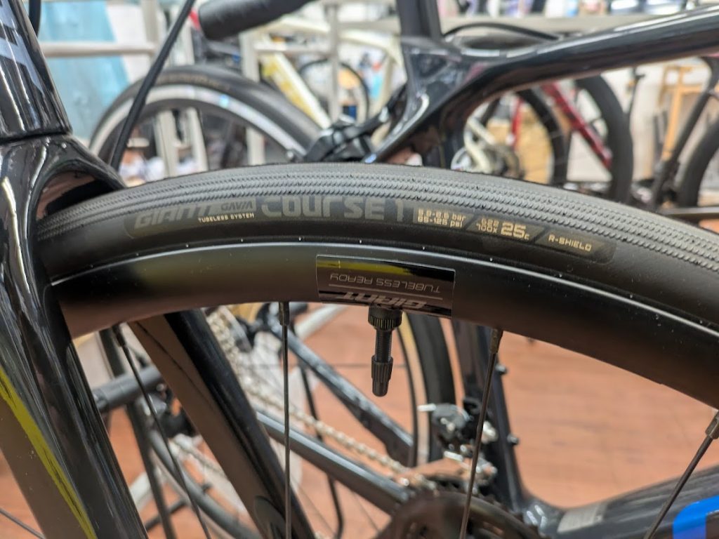 ホイールはいわゆる普通の初期ホイールとなっており、チューブレスでの運用が初期設定となっていますが、こちらもチューブをいれてクリンチャー化される方も多いです。