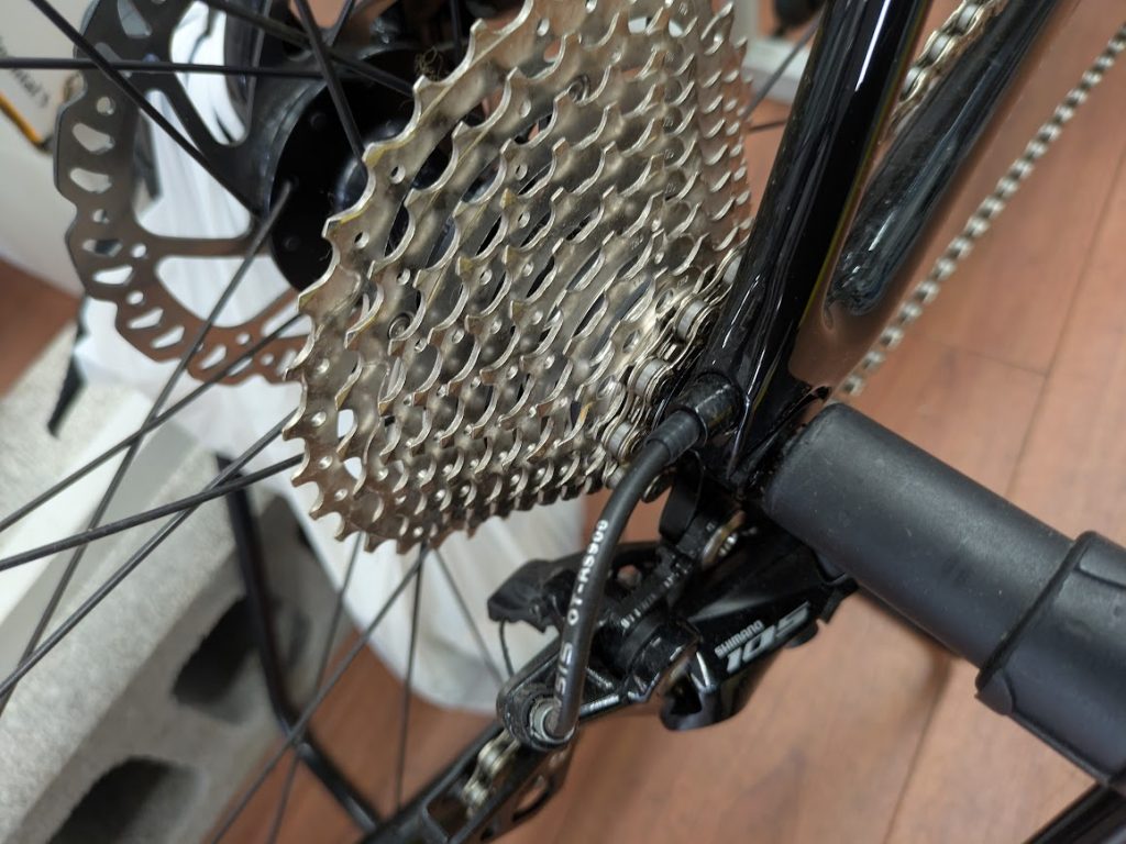 変速は 11S 105になっています。12Sも良いのですが、個人的にはフレーム形状からワイヤー引きに関しては9世代目の方がちょっとレスポンスは速い気がします。