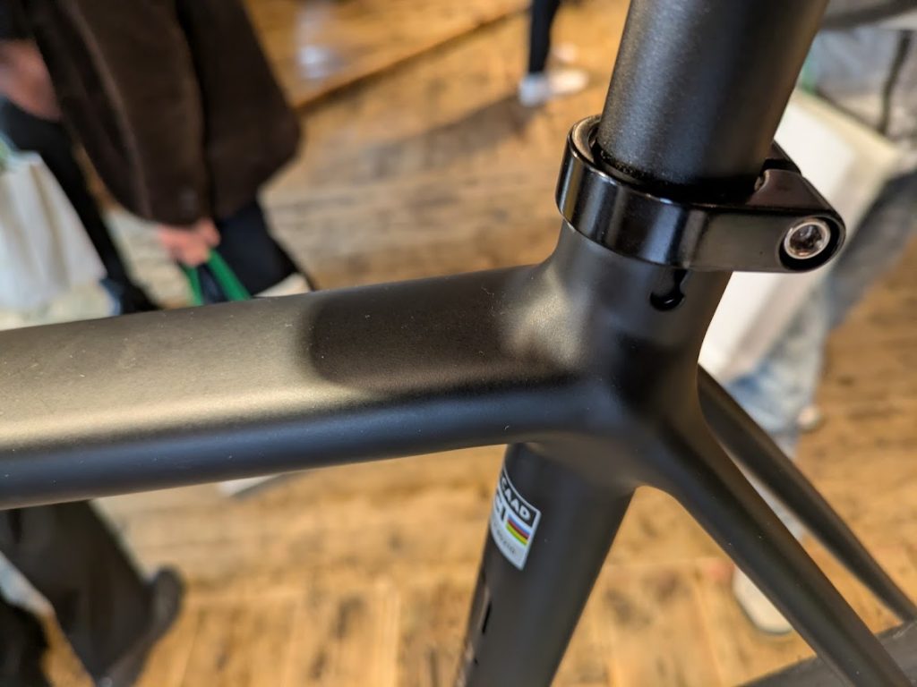 シートポストは丸形へと戻りました。これにより、より汎用性の高いシートを選べますね。そして、見ていただけると分かる通り今回溶接がすごい綺麗です。